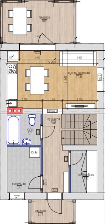 - Фундамент: ленточный, высота 80 см, бетон М300, армирование